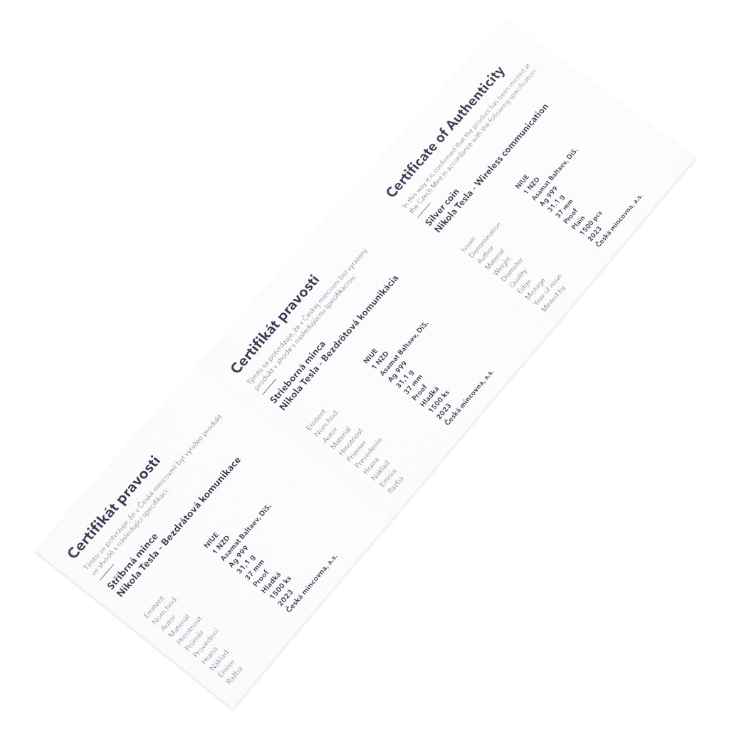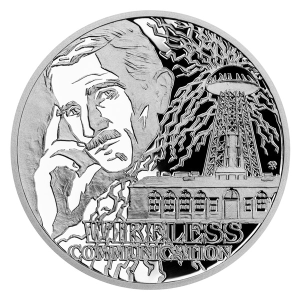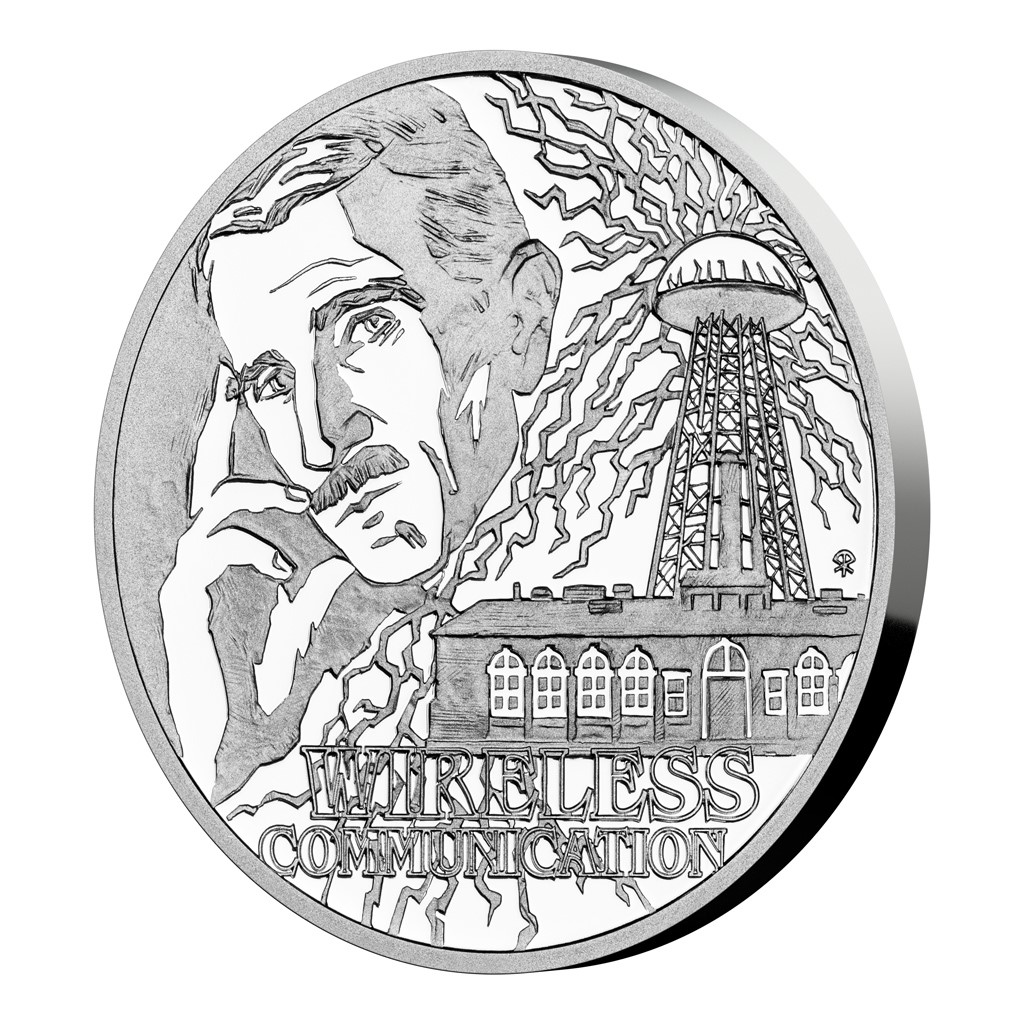 Třetí stříbrná mince ze čtyřdílné minisérie věnované geniálnímu vynálezci Nikolu Teslovi připomíná jeho úspěchy v oblasti bezdrátového přenosu energie a informací.