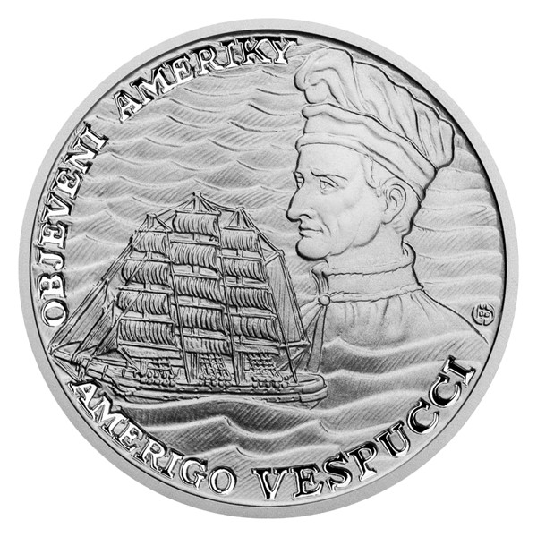 Na závěrečné stříbrné minci České mincovny z třídílné minisérie s názvem Objevení Ameriky najdete dobrodružství florentského mořeplavce Ameriga Vespucciho.
