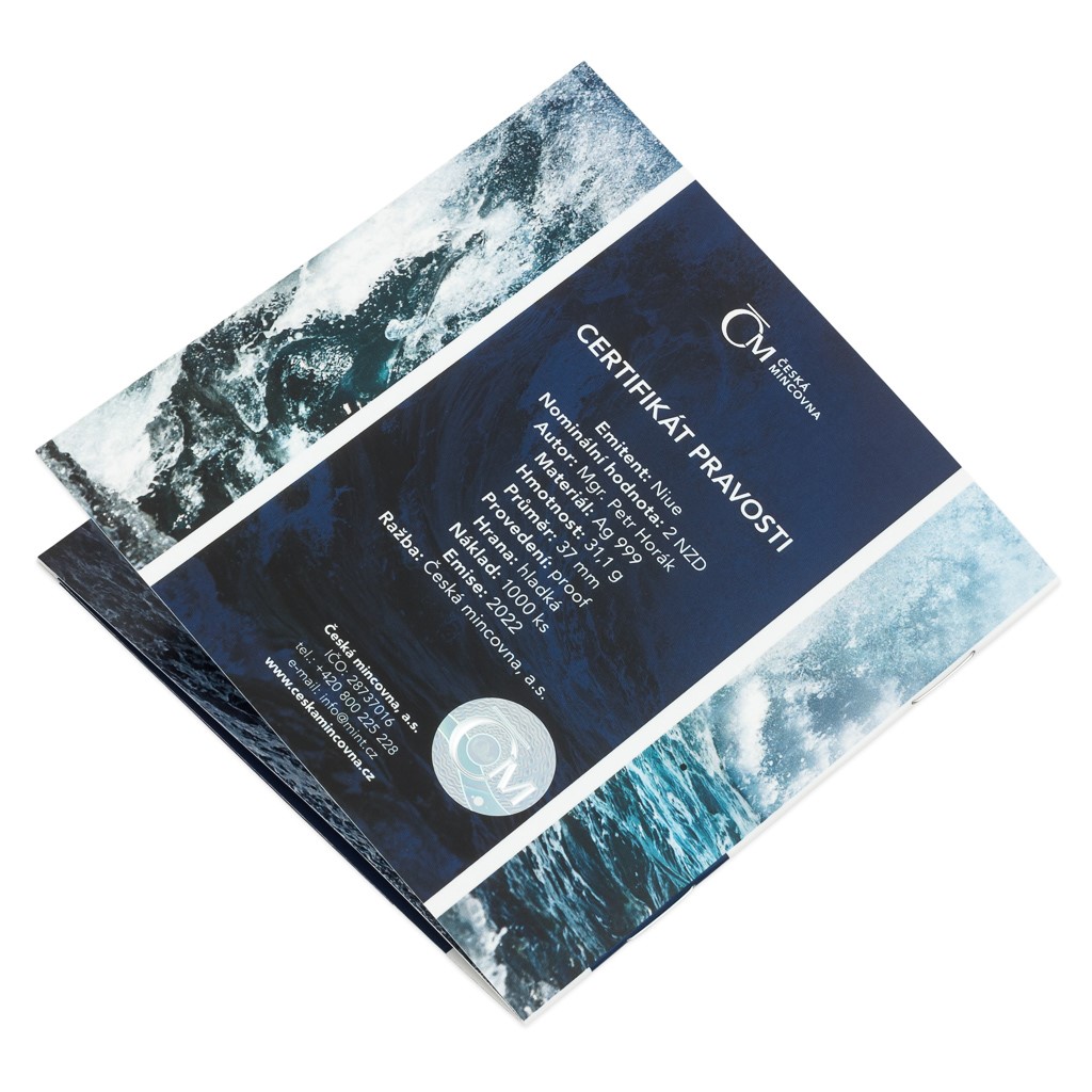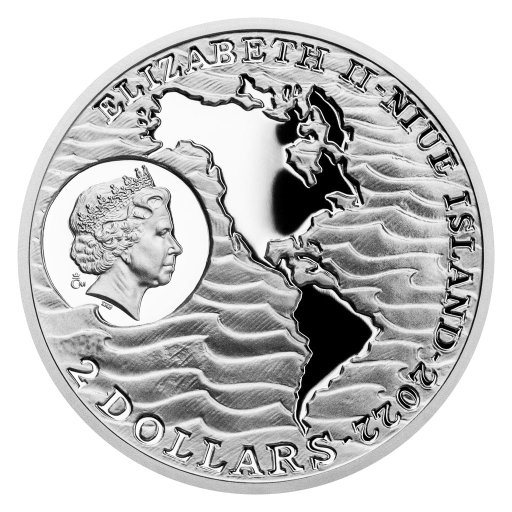 Reverzní strana pamětní mince, která je dílem medailéra Mgr. Petra Horáka, předkládá portrét Ameriga Vespucciho z profilu. Mincovní plochu vyplňují vlny, na kterých se kolébá loď. „Protože jsem dlouho hledal a nenacházel historickou podobu Vespucciho lodí, která podle všeho ani není známa, použil jsem vyobrazení novodobé plachetnice, kterou italské námořnictvo z úcty ke svému krajanovi pojmenovalo Amerigo Vespucci,“ vysvětluje autor mince. Vlny, které obklopují Severní a Jižní Ameriku, najdete také na averzní straně, jež je společná celému cyklu objevitelských mincí. Protože licenci k vydávání pamětních mincí České mincovny poskytuje tichomořský ostrov Niue, nese averz ještě jeho nezbytné atributy – jméno a portrét královny Alžběty II., nominální hodnotu 2 DOLLARS (NZD) a rok vydání 2022.