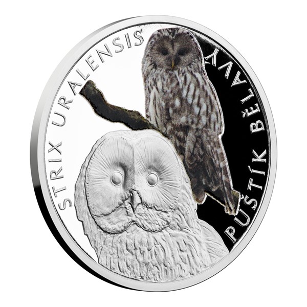 Sběratelská série kolorovaných stříbrných mincí České mincovny s motivy představitelů naší ohrožené přírody v roce 2017 pokračuje zástupcem ptačí říše – puštíkem bělavým.