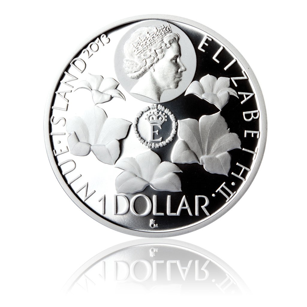 Na averzní straně mince se nachází portrét královny Alžběty, nominál 1 Dollar, rok vydání 2013, země Niue Island a rostlinný motiv. Na reverzní straně se nachází kolorovaný motiv Střevíčníku, který je doplněn červeným šatonem.