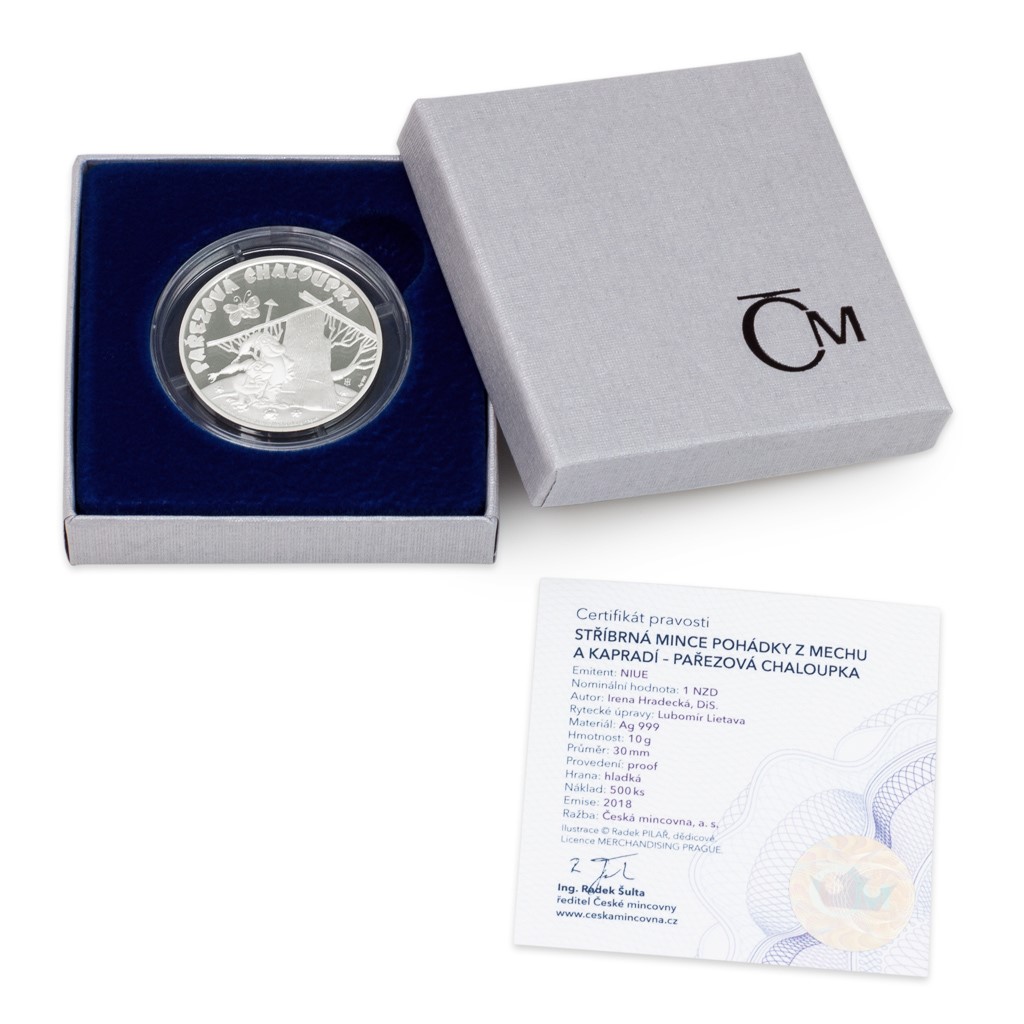 V minisérii České mincovny „Pohádky z mechu a kapradí“ se nejprve představili Křemílek s Vochomůrkou. Třetí a poslední stříbrná mince je věnovaná jejich domečku – pařezové chaloupce.