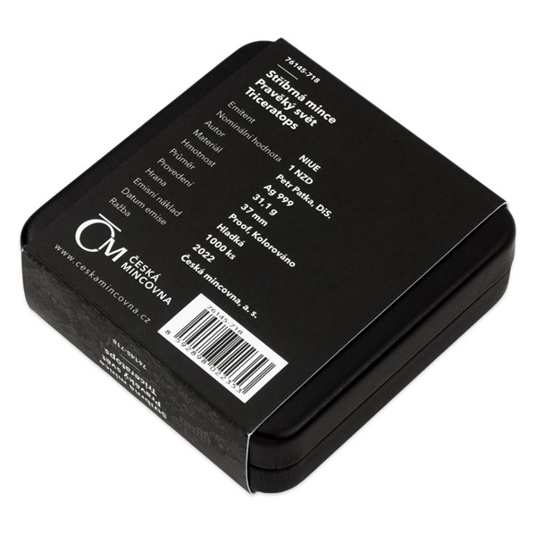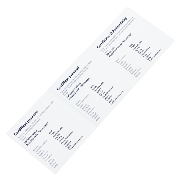 Stříbrná mince Pravěký svět - Triceratops proof