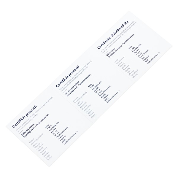 Stříbrná mince Pravěký svět - Tyrannosaurus proof