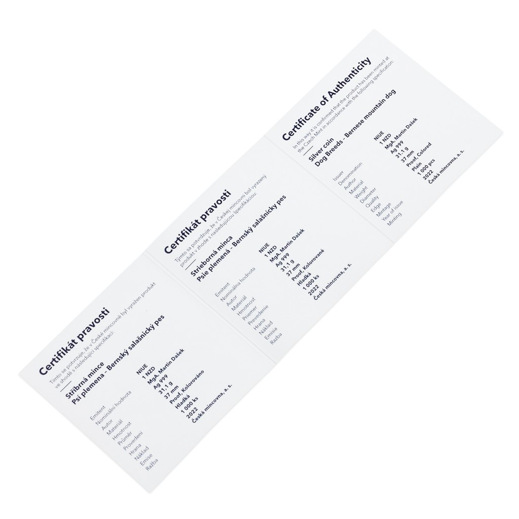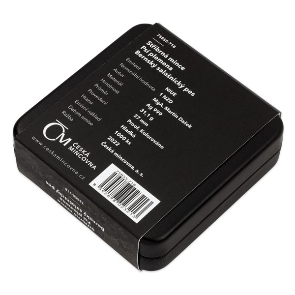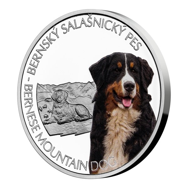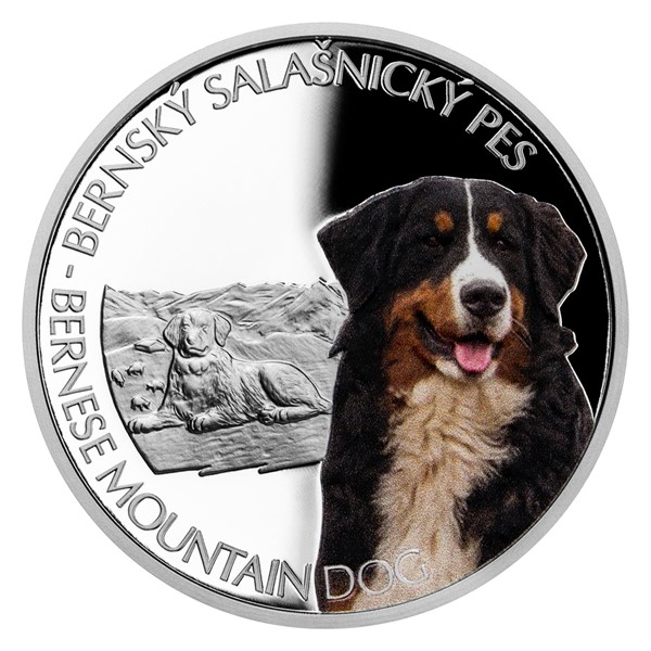 Sedmá stříbrná mince České mincovny z cyklu Psí plemena je věnována bernskému salašnickému psovi.