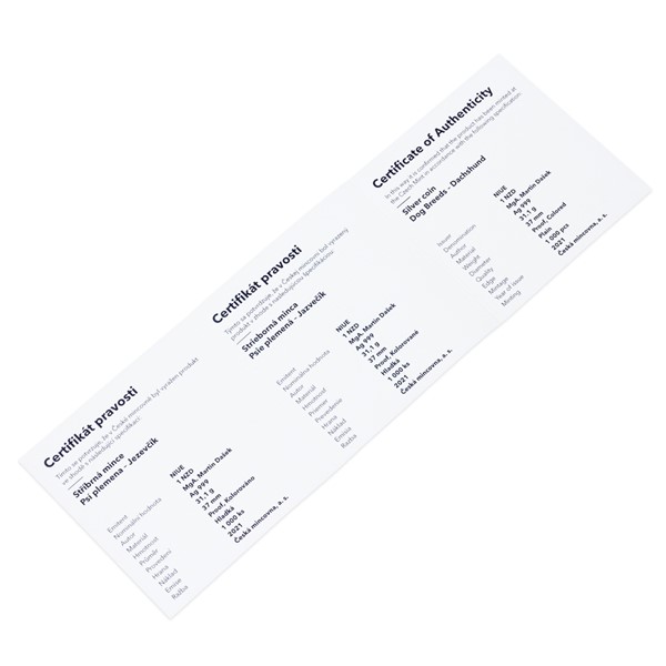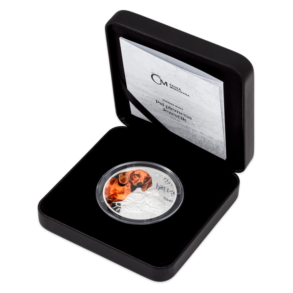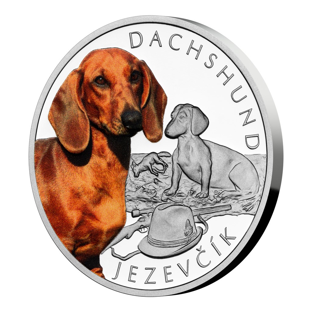 Druhá stříbrná mince České mincovny z cyklu Psí plemena je věnována jezevčíkovi.