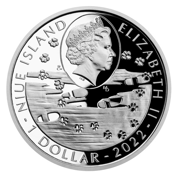 Reverzní strana mince, která je dílem medailéra MgA. Martina Daška, nese hned dvě vyobrazení ohaře. První je kolorované a představuje krátkosrstého výmarského ohaře. Druhé, které je reliéfní, předkládá psa s kachnou v tlamě – ohaři jsou totiž rovněž zdatní v aportování ulovené zvěře. Kompozici dotváří dvojjazyčný opis VÝMARSKÝ OHAŘ – WEIMARANER. Protože mince České mincovny vycházejí v zahraniční licenci ostrova Niue, nesou na averzní straně jméno a portrét královny Alžběty II., nominální hodnotu 1 DOLLAR (NZD) a rok emise 2022. Tyto atributy jsou doplněny řadou stop – lidských a psích.