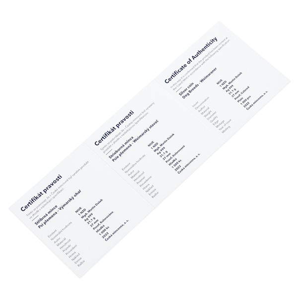 Stříbrná mince Psí plemena - Výmarský ohař proof