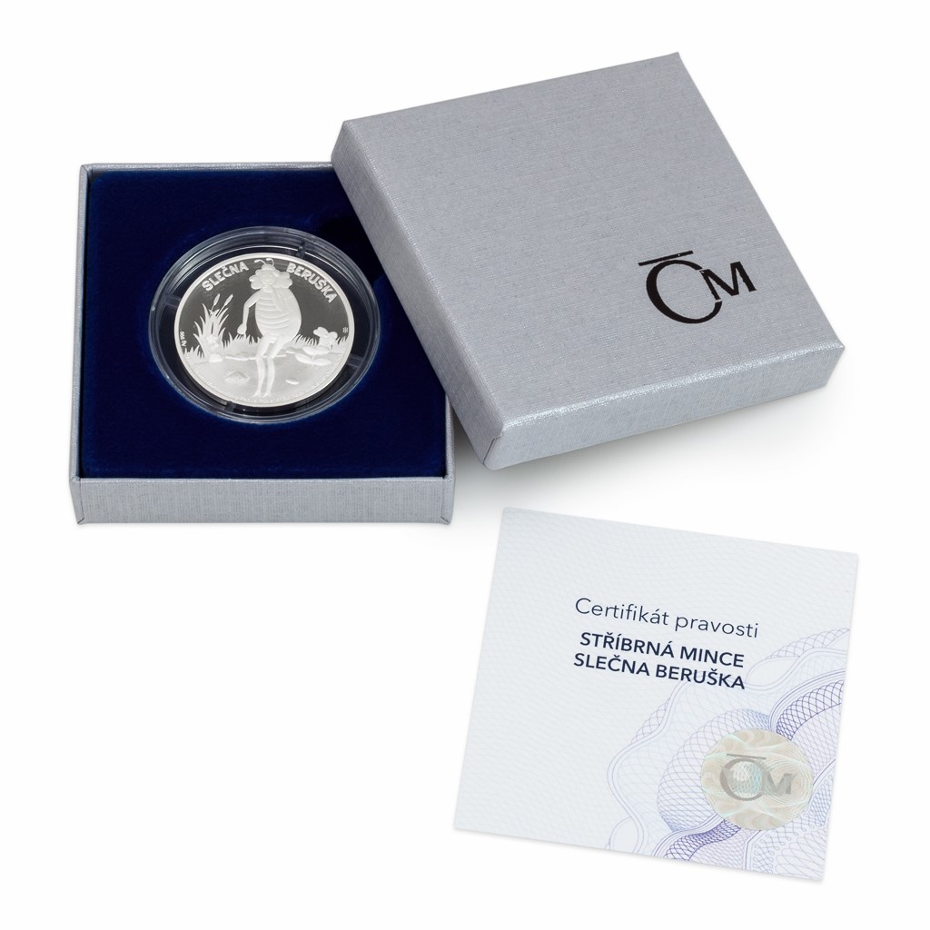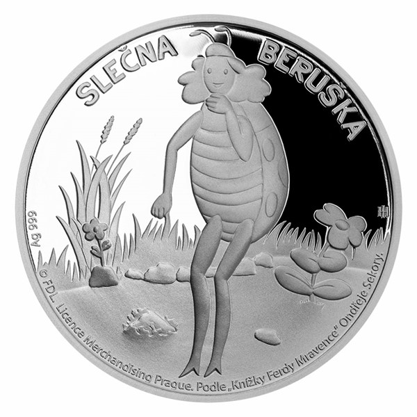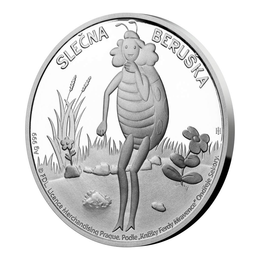 Slečna Beruška je proslulá svou marnivostí. Na jedné stříbrné minci ze sběratelské minisérie České mincovny se sice už objevila, a to po boku Ferdy Mravence, ale bylo jí to málo. Vymohla si proto svou vlastní emisi.