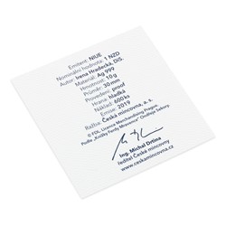 Veselá Beruška, která se svůj úsměv snaží zakrýt dlaní, vévodí reverzní straně mince z ateliéru medailérky Ireny Hradecké, DiS. Averzní strana pak předkládá nezbytné náležitosti ostrova Niue, jehož zahraniční licence České mincovně umožňuje razit vlastní pamětní mince – jsou jimi jméno a portrét královny Alžběty II., rok emise 2019 a nominální hodnota 1 DOLLAR (NZD).