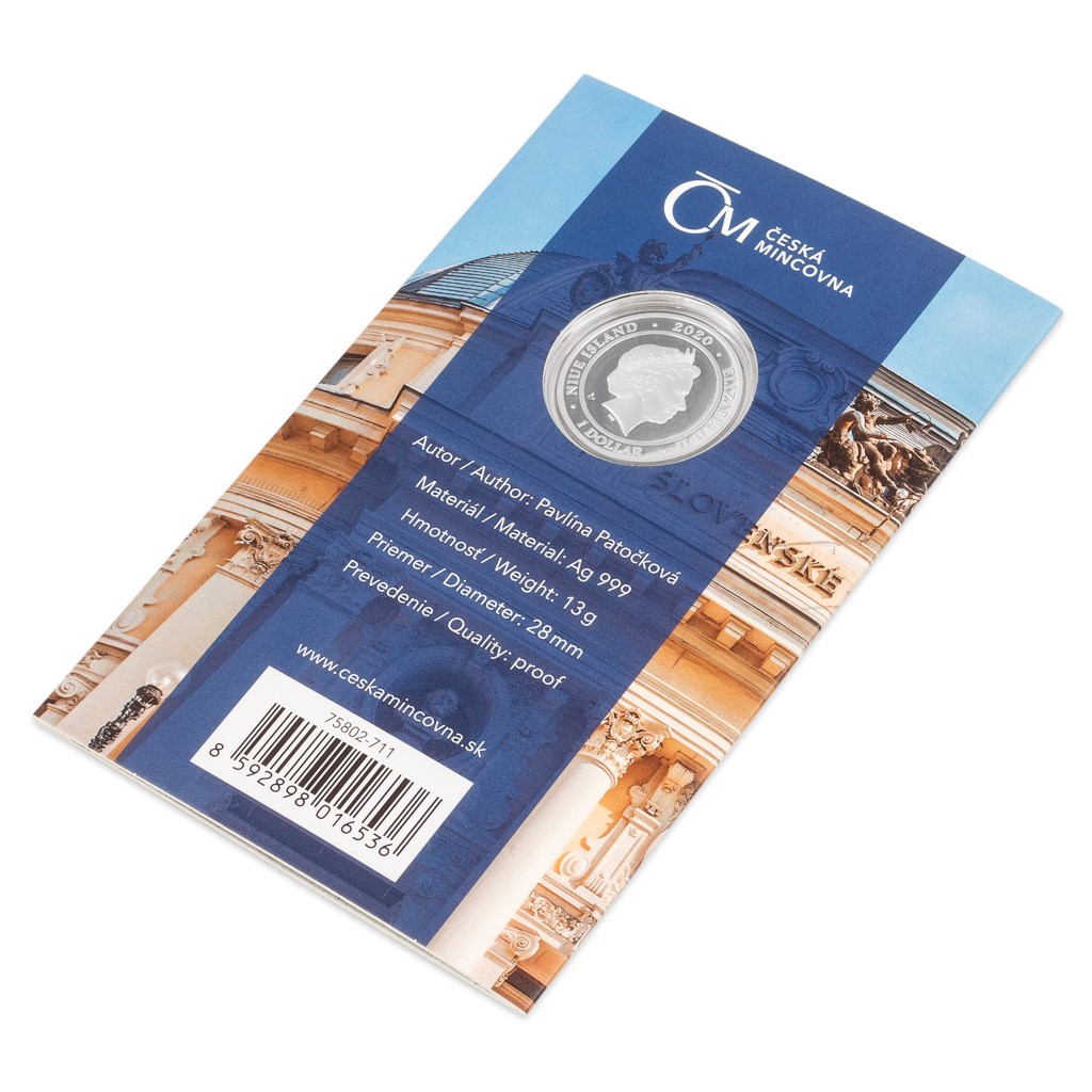 V roce 2020 vstupuje Česká mincovna na Slovensko a při příležitosti otevření kamenné prodejny v Bratislavě vznikla nová série stříbrných mincí nazvaná Krásy Slovenska. Její třetí emise připomíná Slovenské národní divadlo, které slaví 100. výročí existence.