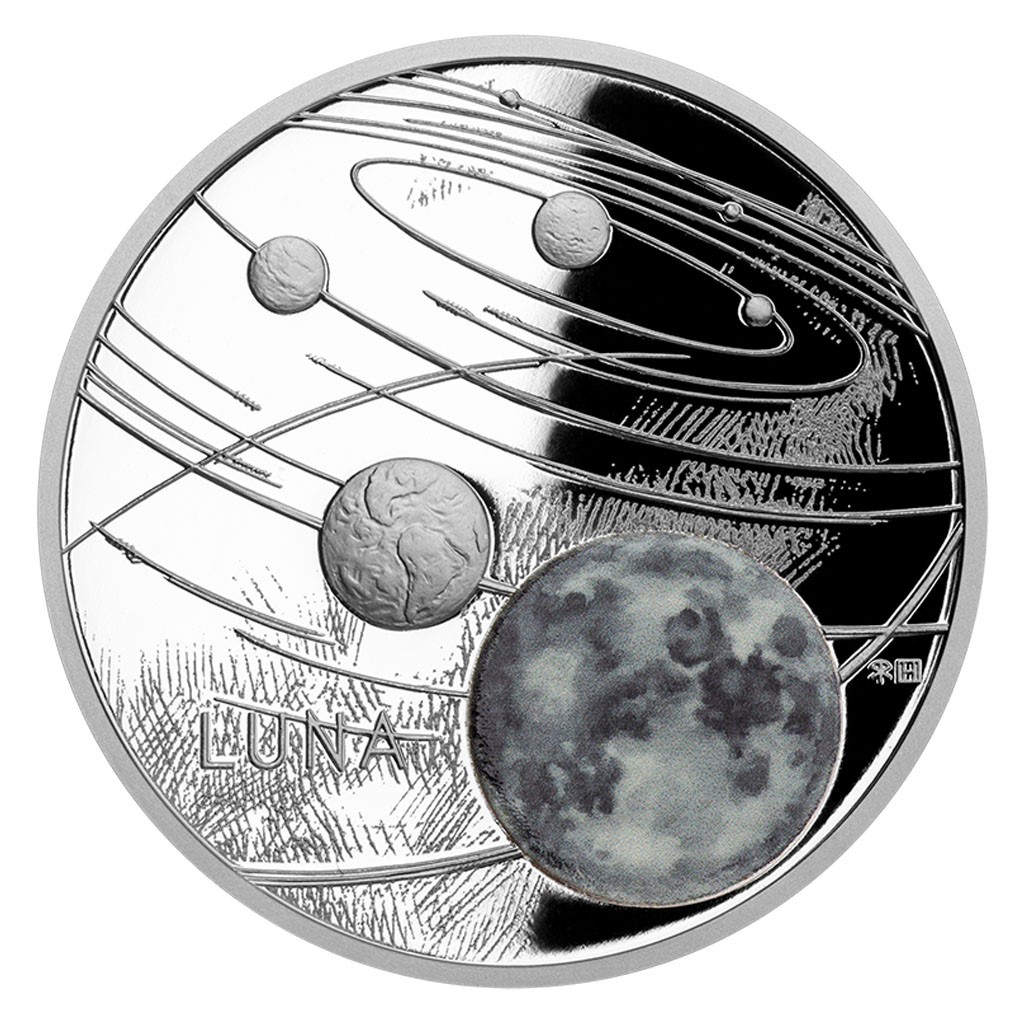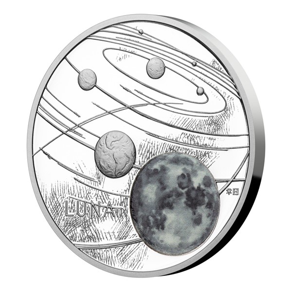 Reverzní straně mince autorského dua Asamat Baltaev, DiS., a Jiří Hanuš, DiS., vévodí kolorované vyobrazení Měsíce doplněné reliéfním vyobrazením Země. Ražený reliéf předkládá také další planety obíhající okolo Slunce. Kompozici doplňuje latinský nápis LUNA. Jako předloha pro kolorování nebyly použity fotografie nebo počítačová grafika – autoři mincí vytvořili originální akvarelové malby. Mincovní plocha ražeb se vyznačuje speciální úpravou – kombinací proofování, pískování a lejzrování razidel bylo docíleno nového efektu, který jsme nazvali „měsíční prach“. Averzní strana mince je věnována vyobrazení celé sluneční soustavy a předkládá astronomické symboly jednotlivých planet. Ve středu soustavy najdete portrét Alžběty II., který je spolu se jménem královny, letopočtem emise 2019 a nominální hodnotou 1 DOLLAR (NZD) nezbytným atributem emitenta mince. Tím je tichomořský ostrov Niue, který České mincovně poskytuje zahraniční licenci k ražbě vlastních pamětních mincí.