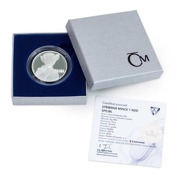 Autorkou výtvarného návrhu stříbrné mince je talentovaná jablonecká medailérka Irena Hradecká, DiS., která má za sebou celou řadu pohádkových realizací – vedle Hurvínka vyšli z její dílny například Křemílek s Vochomůrkou nebo víla Amálka. Reverz mince je věnován jménu a bustě pana Spejbla s typickým komicky omylným výrazem. Smart mince vycházejí pod licencí tichomořského ostrova NIUE ISLAND, a averzní strana tak patří následujícím atributům emitenta: jménu a portrétu královny Alžběty II., nominální hodnotě 1 DOLLAR (NZD) a roku vydání 2016.
