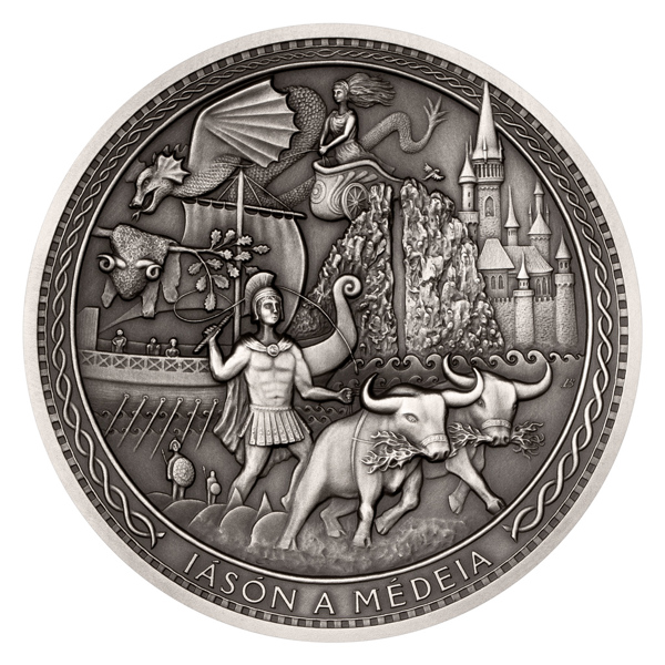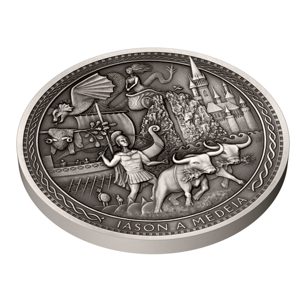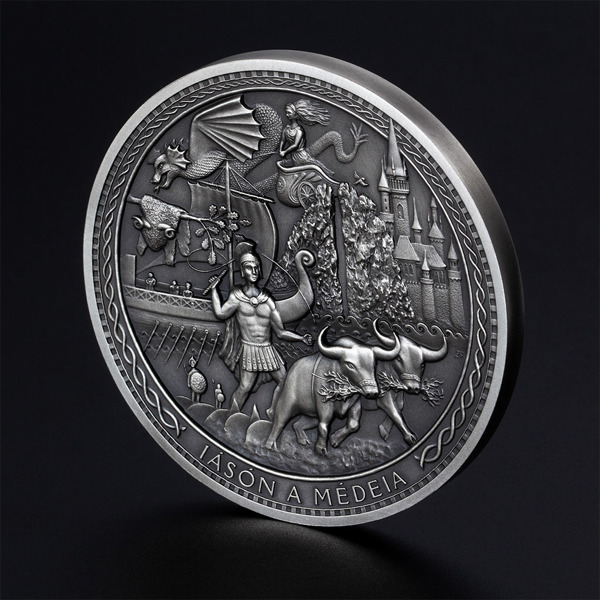 Cyklus stříbrných mincí České mincovny připomíná staré řecké báje a pověsti. Hrdiny první emise jsou Iásón a Médeia.
