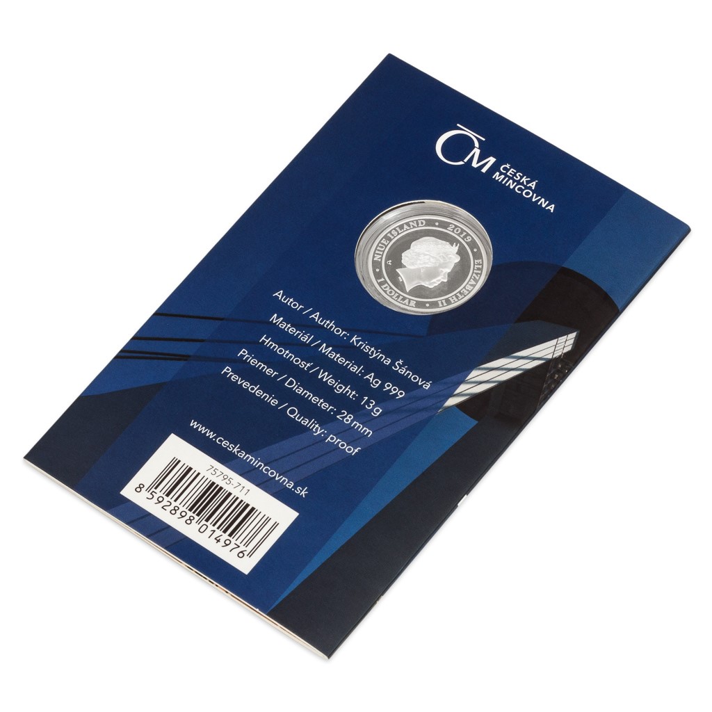 Kristýna Šánová, předkládá pohled na Most SNP z hladiny řeky doplněný opisem UFO BRATISLAVA. Protože mince České mincovny vycházejí v licenci zahraničního emitenta, kterým je ostrov Niue, averzní strana nese jeho nezbytné atributy – nominální hodnotu 1 DOLLAR (NZD), jméno a portrét královny Alžběty II. a rok emise 2019.