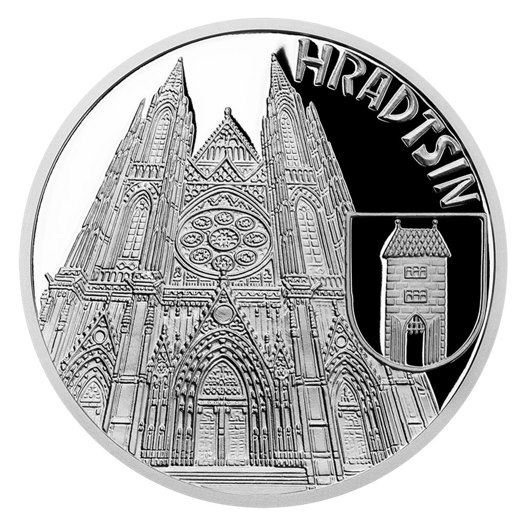 Na čtvrté a poslední stříbrné minci České mincovny z minisérie s názvem Vznik královského hlavního města Praha se objevují Hradčany.