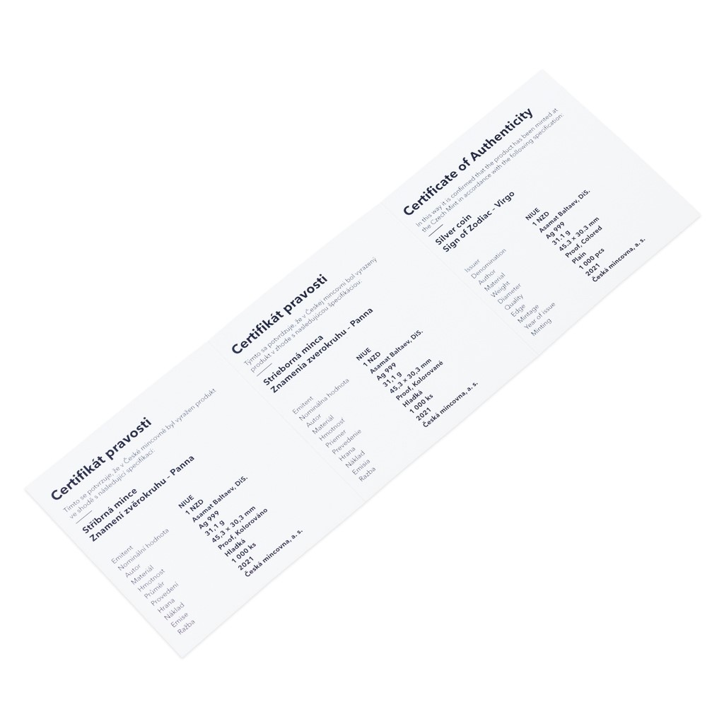 Stříbrná mince České mincovny z dárkové série s motivy 12 znamení zvěrokruhu se stane nejen krásným, ale také hodnotným talismanem pro každého, kdo se narodil ve znamení Panny.