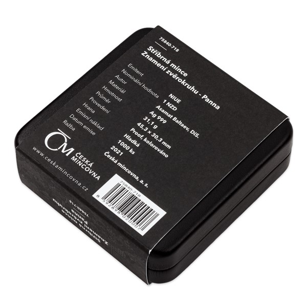 Mince netradičního oválného tvaru nese na reverzní straně kolorované vyobrazení Panny. Jako předloha pro kolorování nebyly použity fotografie nebo počítačová grafika – autor mince Asamat Baltaev, DiS., vytvořil originální akvarelovou malbu. Reliéf v pozadí za Pannou předkládá disk s tuctem znamení zvěrokruhu. Kompozici reverzu pak dotváří ještě latinský opis VIRGO a příslušný astrologický symbol. Protože mince České mincovny vycházejí v zahraniční licenci ostrova Niue, nesou na averzní straně jeho státní znak, nominální hodnotu ONE DOLLAR (NZD) a letopočet emise 2021. To vše je obklopeno dvanácti astrologickými znameními.