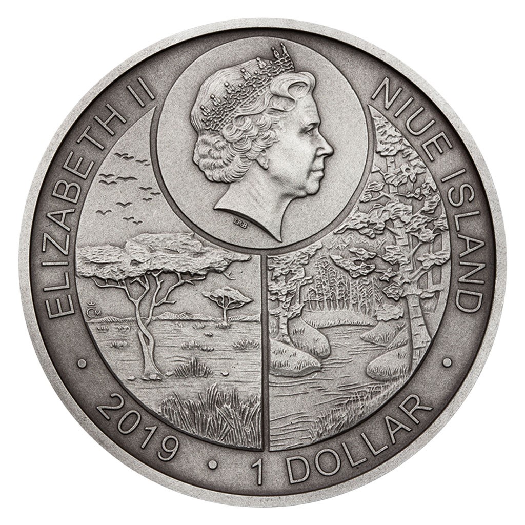 Reverzní strana mince, jejímž autorem se stal medailér Petr Patka, DiS., předkládá vyobrazení gepardí tváře obklopené latinským jménem ACINONYX JUBATUS. Jednotlivé detaily vynikají díky decentní patině. Autorem averzní strany, která je společná všem mincím z cyklu, je medailér David Kružliak. Kompozice averzu se skládá z dvojice přírodních scenérií a atributů ostrova Niue, který České mincovně poskytuje zahraniční licenci k vydávání vlastních pamětních mincí. Jsou jimi jméno a portrét královny Alžběty II., nominální hodnota 1 DOLLAR (NZD) a rok emise 2019.