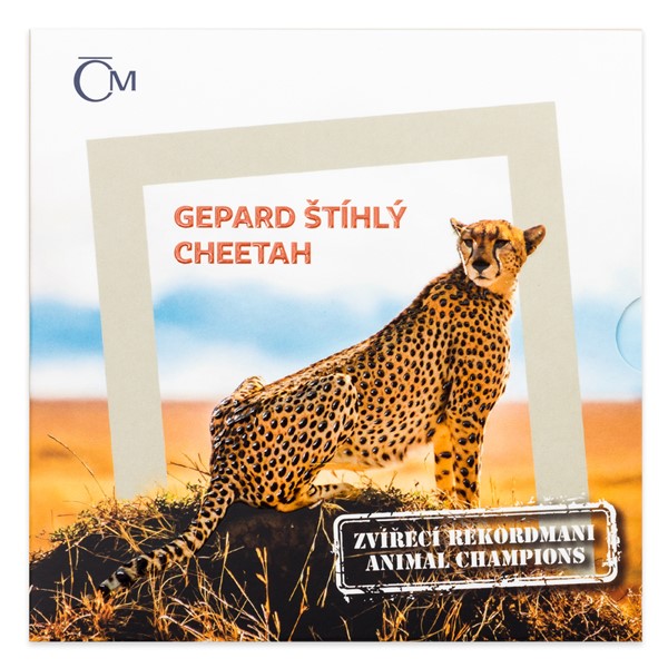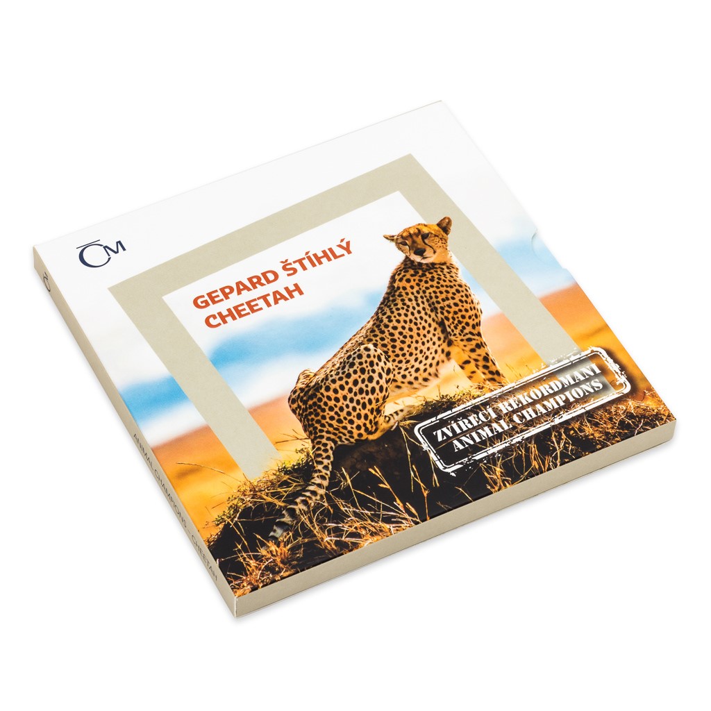 Nový cyklus České mincovny s názvem Zvířecí rekordmani představuje zástupce živočišné říše, jejichž neobyčejné schopnosti se vymykají konvencím. První stříbrná mince zkrášlená patinou je věnována nejrychlejšímu suchozemskému tvorovi na světě, kterým je gepard štíhlý.