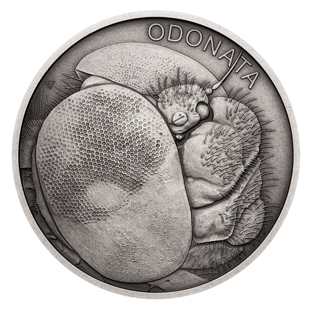 Medailér Petr Patka, DiS., vyobrazil na reverzní straně mince propracovaný detail hlavy vážky doplněný opisem ODONATA – tj. latinským názvem tohoto hmyzího řádu. Povrch mince je zkrášlený patinou, což dává vyniknout i těm nejjemnějším drobnostem – včetně jednotlivých oček. Autorem averzní strany, která je společná všem mincím z cyklu, je medailér David Kružliak. Kompozice averzu předkládá dvojici přírodních scenérií a atributy ostrova Niue, který České mincovně poskytuje zahraniční licenci k vydávání vlastních pamětních mincí. Jsou jimi profil a jméno panovnice Alžběty II., nominální hodnota 1 DOLLAR (NZD) a rok emise 2019.