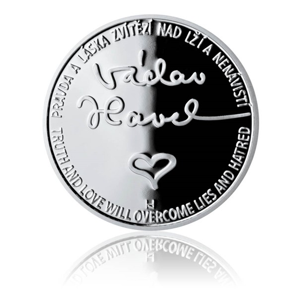 Hlavním motivem averzní strany je portrét Václava Havla, který je doplněn písmem v řádcích. Motiv reverzní strany zaujímá centrálně umístěný podpis Václava Havla, který je doplněn v opisu dvoujazyčným heslem: „Pravda a láska zvítězí nad lží a nenávistí“.