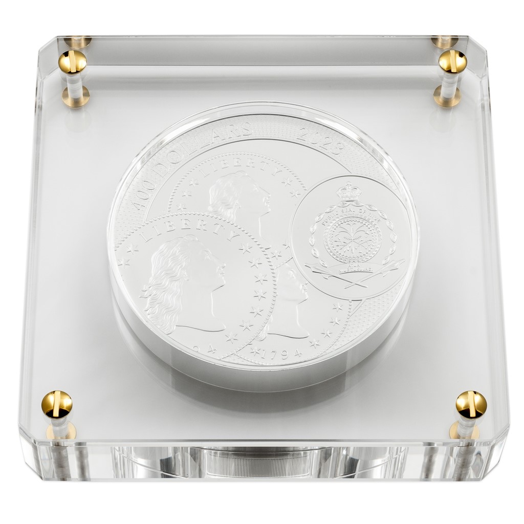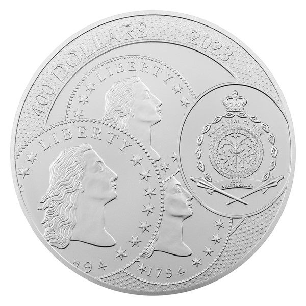 V České mincovně se k odkazu jáchymovských mincmistrů hrdě hlásíme. Je příhodné, že vedle mincí s nominální hodnotou v korunách razíme i dolarové mince – novozélandské, fidžijské či samojské. Po pěti stech letech se tak kruh uzavřel a dolary se vrátily tam, odkud vzešly… Zatímco reverzní strana investiční mince, která je dílem designéra Ladislava Vraného a medailéra MgA. Martina Daška, předkládá tři jáchymovské tolary, na averzu najdete trojici amerických dolarů. Konkrétně se jedná o motiv úplně prvních mincí ražených Spojenými státy v roce 1794, které si od svého českého prapředka vypůjčily nejen jméno, ale také váhu a ryzost použitého kovu. Protože mince České mincovny vycházejí v licenci zahraničního emitenta, kterým je ostrov Niue, jejich averzní strana nese ještě jeho nezbytné atributy – státní znak, nominální hodnotu 400 DOLLARS (NZD) a rok emise 2023.