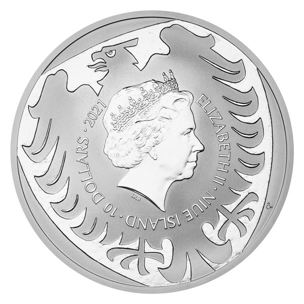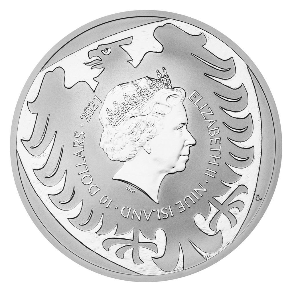 Reverzní straně mince vévodí český lev v netradičně realistickém podání se Svatováclavskou korunou na hlavě. Averzní strana pak předkládá orlici na štítu, která je syntézou svatováclavského, moravského a slezského dravce. Autorem reliéfu je již tradičně medailér Asamat Baltaev, DiS. Protože mince České mincovny vycházejí v licenci zahraničního emitenta, kterým je ostrov Niue, jejich averzní strana nese jeho nezbytné atributy – jméno a portrét královny Alžběty II., nominální hodnotu 10 DOLLARS (NZD) a rok emise 2021.