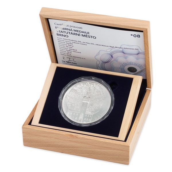 Sběratelská medaile vyražené z jedné poloviny kilogramu ryzího stříbra jsou součástí série České mincovny nazvané Statutární města. Zvláštní místo mezi těmito prestižními sídly zaujímá Brno, neboť se jedná o druhou největší metropoli České republiky, a to rozlohou i počtem obyvatel.