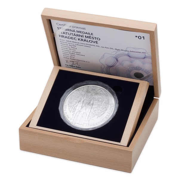 Hradec Králové je správní, kulturní i duchovní centrum severovýchodních Čech. Je také jedním ze současných 26 statutárních měst, která patří k našim nejvýznamnějším sídlům a kterým Česká mincovna věnovala sérii stříbrných sběratelských medailí vyražených z jedné poloviny kilogramu ryzího stříbra.