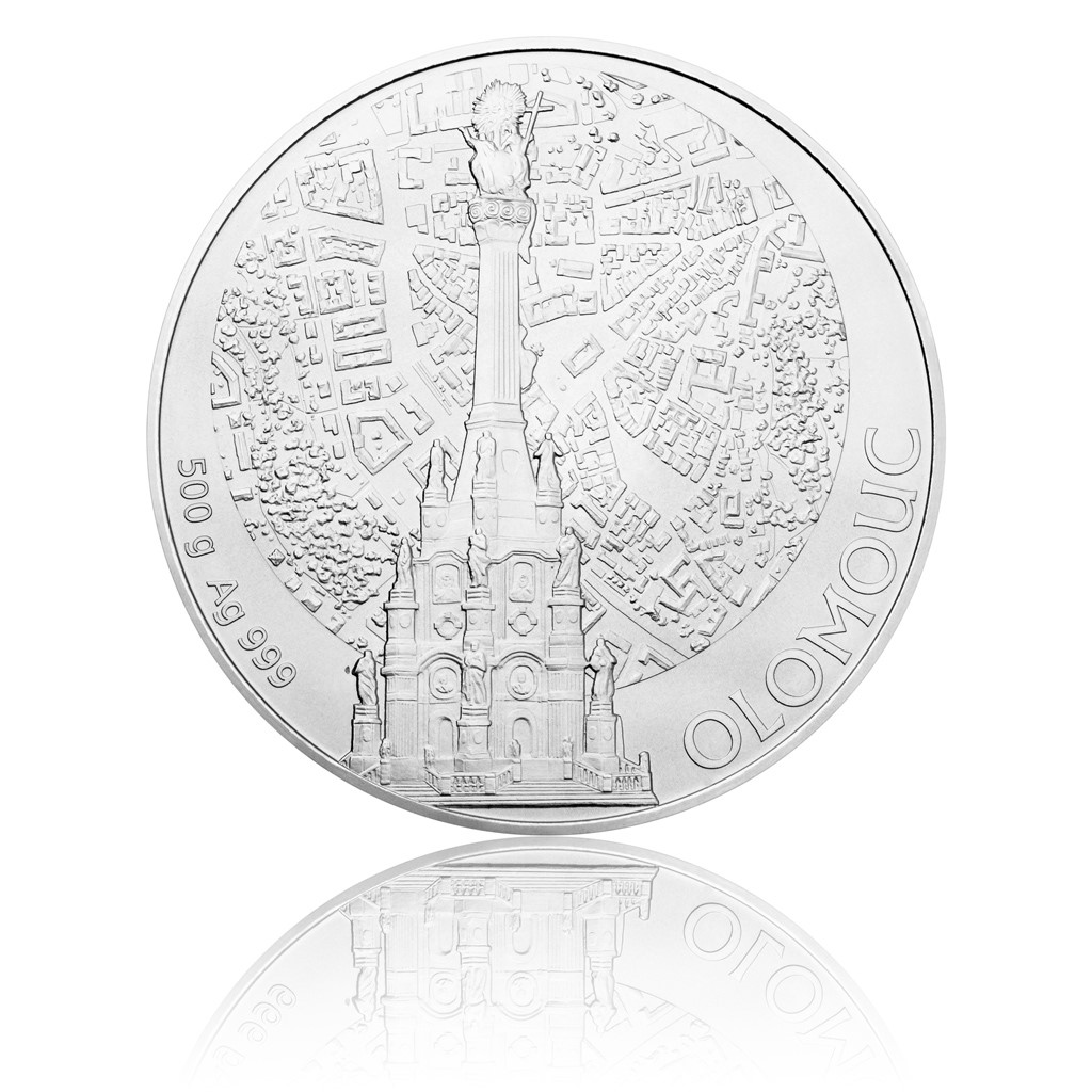 Výsledkem mistrovské souhry význačných českých umělců je pouhých 48 kusů mimořádně vydařené stříbrné medaile Olomouc. Návrhu reverzu, jenž celou sérii Statutární města od České mincovny výtvarně propojuje, je Bc. Miroslav Schovanec, DiS. Ten zhmotnil v netradiční plastice kompozici pozadí tvořeného názvy všech 26 měst s mapou, v níž jsou jednotlivě vyznačena. Tento námět harmonicky doplňuje vizuál averzu nesoucí kruhový výřez letecké mapy s pohledem na Olomouc spolu s výjimečně povedenou plastikou sloupu Nejsvětější Trojice v popředí. Výjev doplnil autor averzní strany, Jan Petr, DiS., označením ryzosti, hmotnosti a nápisem Olomouc. Medaile z ryzího stříbra o hmotnosti půl kilogramu se stane ozdobou, která do vašich kolekcí vnese nejen významnou estetickou hodnotu, ale také nesporný sběratelský potenciál!