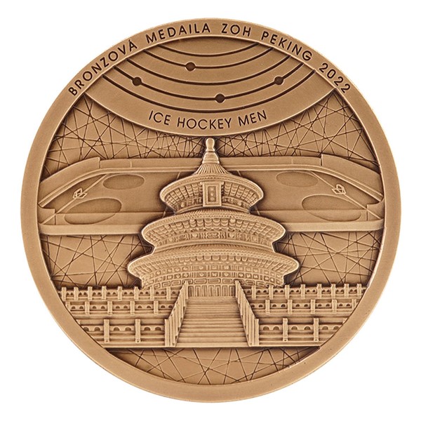 A to není vše! V Pekingu v roce 2022 získalo Slovensko svou úplně první hokejovou olympijskou medaili, a ke stříbrné ražbě je proto přiložena ještě mosazná medaile z dílny Branislava Ronaie, která připomíná tento bronzový sportovní triumf.