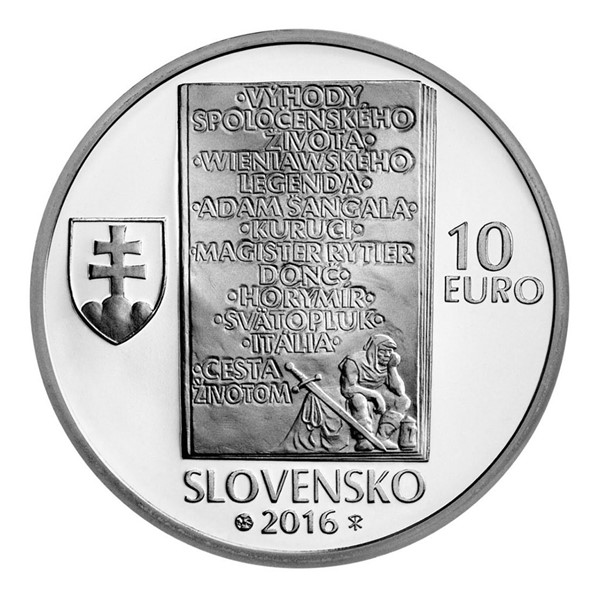 Slovenská stříbrná euromince byla vyražena v kvalitě proof u příležitosti 150. výročí narození Ladislava Nádaši-Jégého.