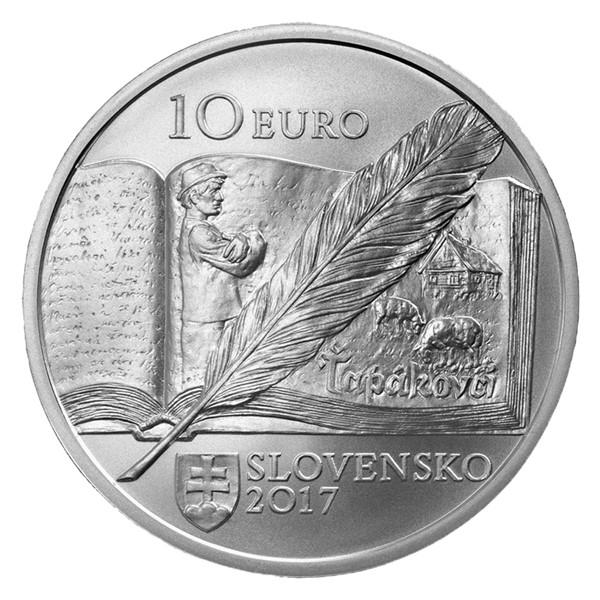 Na averzní straně mince medailér Asamat Baltaev vyobrazil otevřenou knihu, která předkládá výjev z novely s názvem Ťapákovci. Spisovatelka v ní popisuje příběh omezené venkovské rodiny, jejíž malost jí brání vystoupit ze zažitých kolejí a přijmout pokrok. Kompozici dotváří psací brk a atributy emitenta mince – slovenský státní znak, nominální hodnota 10 EURO, nápis SLOVENSKO a letopočet emise 2017. Motiv averzu pokračuje i na reverzu – otevřenou knihu překrývá portrét Timravy doplněný jejím jménem a životopisnými daty 1867–1951.