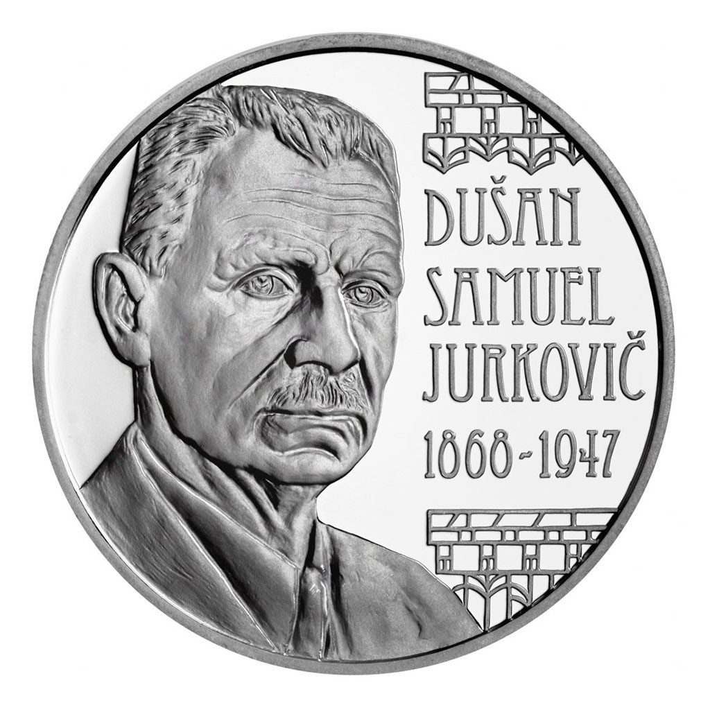 Slovenská stříbrná euromince byla vyražena v kvalitě standard u příležitosti 150. výročí narození Dušana Sama Jurkoviče.