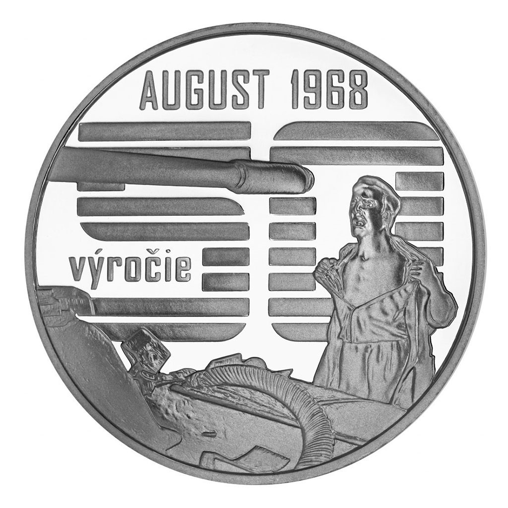 Slovenská stříbrná euromince byla vyražena v kvalitě standard u příležitosti 50. výročí událostí, které se odehrály v srpnu roku 1968.