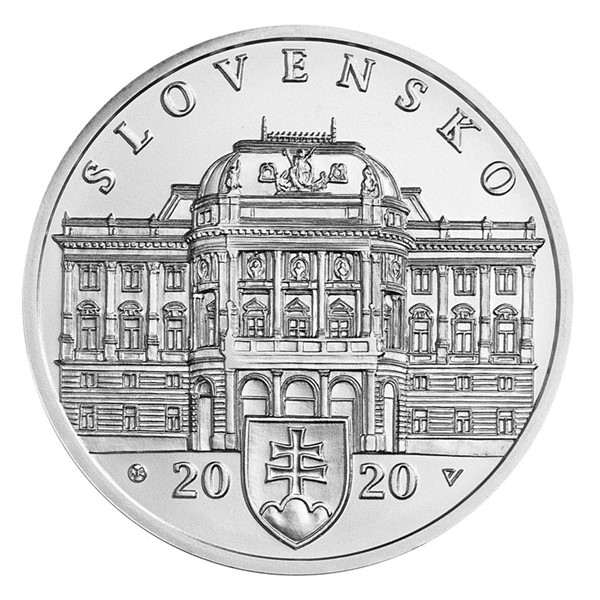Stříbrná slov. mince 10 EUR 2020 100. výročí založení Slovenského národního divadla stand