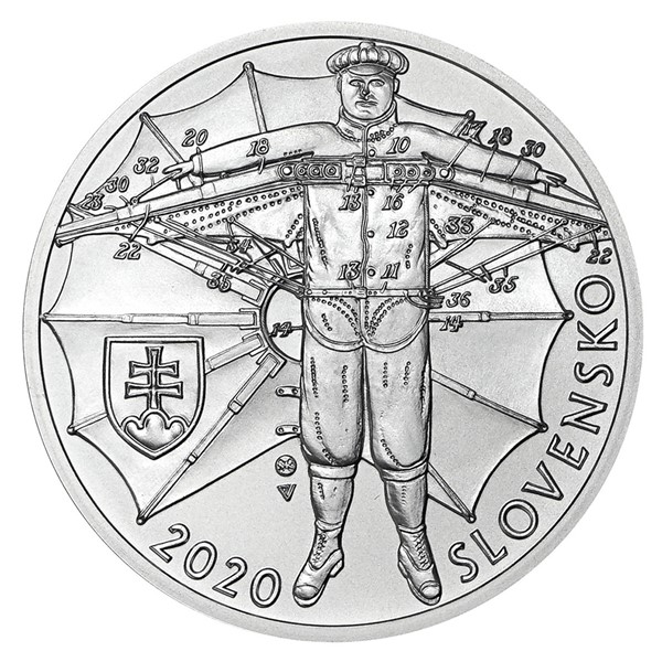 Stříbrná mince, kterou v roce 2020 vydala Národná banka Slovenska, vzdává hold Štefanu Baničovi. Nenápadný muž se narodil před 150 lety a zapsal se do dějin letectví.