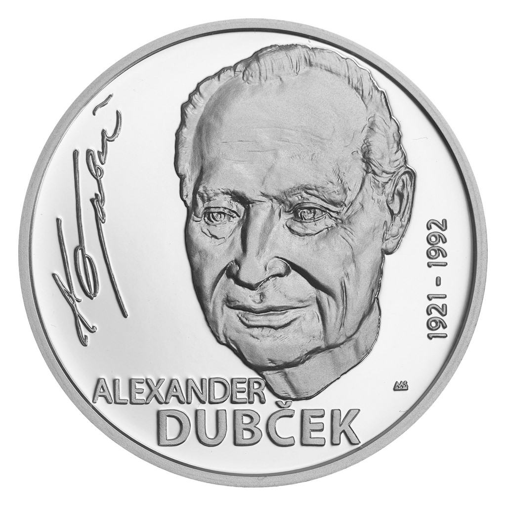 Stříbrná mince s nominální hodnotou 10 euro byla vyražena v kvalitě standard u příležitosti 100. výročí narození Alexandra Dubčeka.