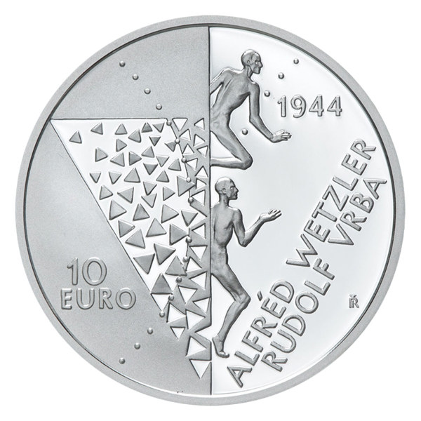 Slovenská stříbrná euromince byla vyražena v kvalitě proof u příležitosti 80. výročí zprávy Vrby a Wetzlera o německých vyhlazovacích táborech.