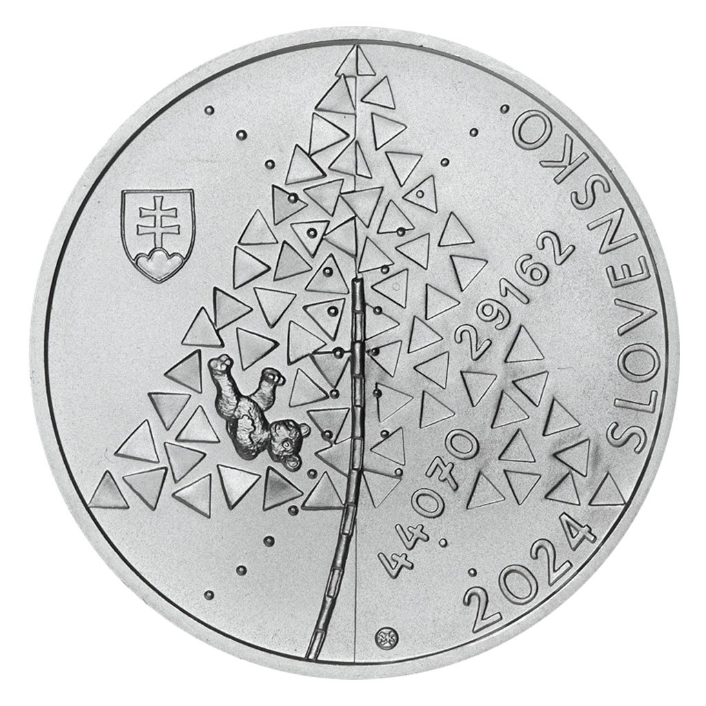 Stříbrná slov. mince 10 EUR 2024 - 80. výročí zprávy o vyhlazovacím táboře Osvětim stand