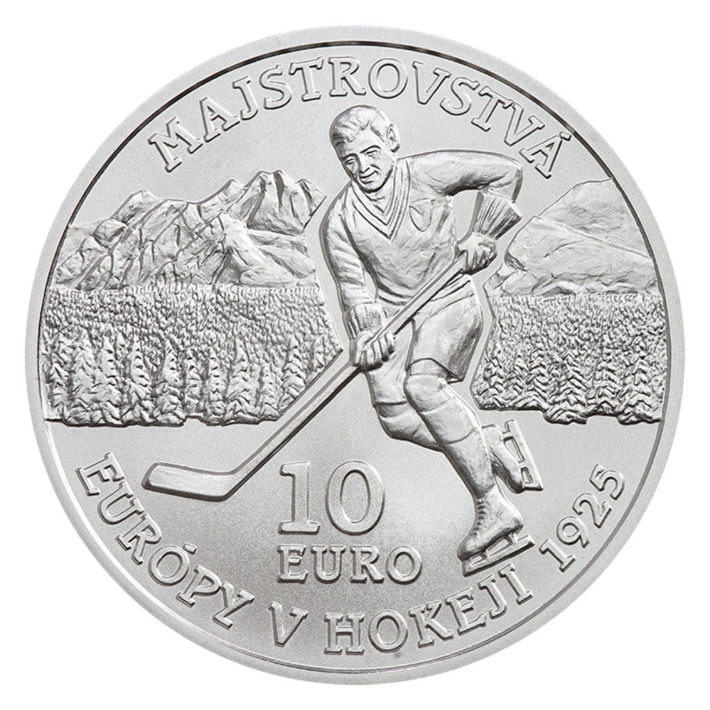 Slovenská stříbrná euromince byla vyražena v kvalitě standard u příležitosti stého výročí desátého mistrovství Evropy v ledním hokeji – prvního a dosud jediného, které se konalo na Slovensku.
