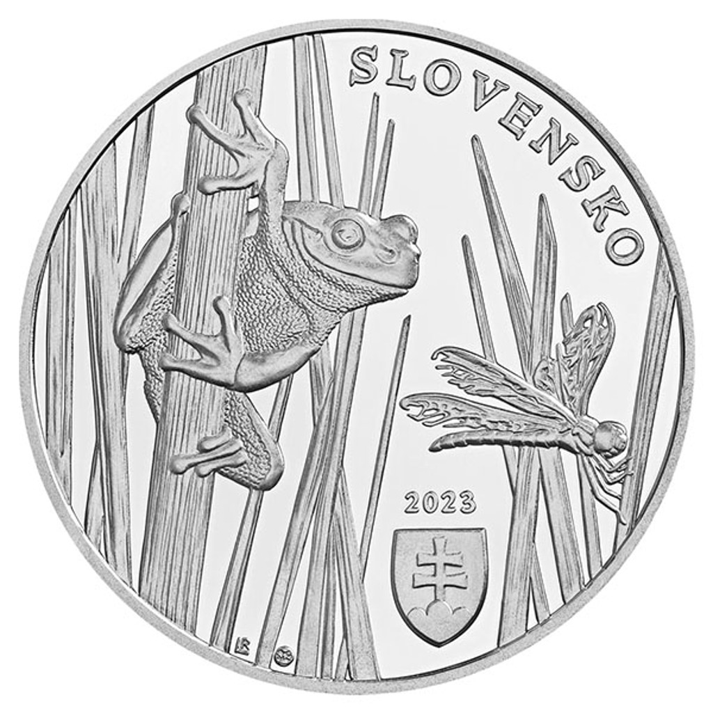 Slovenská stříbrná euromince, která byla vyražena v kvalitě standard, připomíná krásy CHKO Vihorlat.