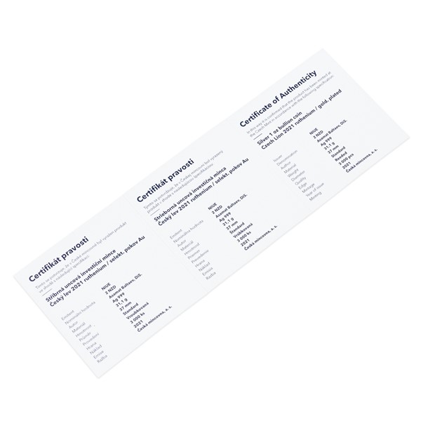 Čeští lvi – investiční mince České mincovny – sice slouží k uložení peněžních prostředků do drahých kovů, ale jejich propracovaný reliéf láká také každého, kdo chce rozšířit svou numismatickou sbírku nebo věnovat výjimečný dárek. Krásu stříbrné mince s ročníkem 2021 podtrhuje hned dvojí pokovení – vzácným zlatem a nevšedním rutheniem.