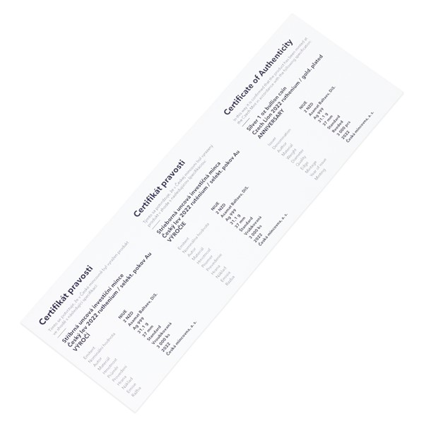 „Čeští lvi“ – investiční mince České mincovny – sice slouží k uložení peněžních prostředků do drahých kovů, ale jejich propracovaný reliéf láká také každého, kdo chce rozšířit svou numismatickou sbírku nebo věnovat výjimečný dárek. Krásu stříbrné mince s ročníkem 2022 podtrhuje hned dvojí pokovení – vzácným zlatem a nevšedním rutheniem.