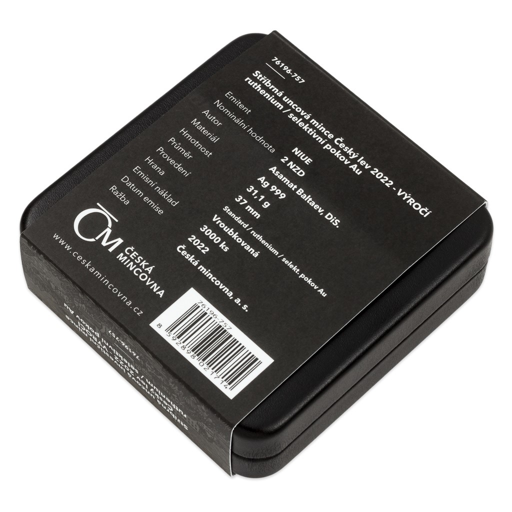 Stříbrná uncová investiční mince Český lev 2022 ruthenium selekt. pokov Au stand VÝROČÍ