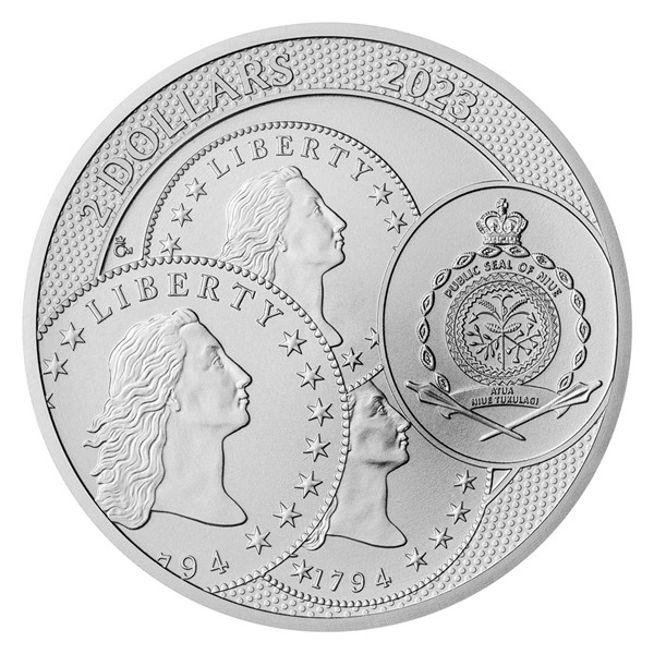 V České mincovně se k odkazu jáchymovských mincmistrů hrdě hlásíme. Je příhodné, že vedle mincí s nominální hodnotou v korunách razíme i dolarové mince – novozélandské, fidžijské či samojské. Po pěti stech letech se tak kruh uzavřel a dolary se vrátily tam, odkud vzešly… Zatímco reverzní strana investiční mince, která je dílem designéra Ladislava Vraného a medailéra MgA. Martina Daška, předkládá tři jáchymovské tolary, na averzu najdete trojici amerických dolarů. Konkrétně se jedná o motiv úplně prvních mincí ražených Spojenými státy v roce 1794, které si od svého českého prapředka vypůjčily nejen jméno, ale také váhu a ryzost použitého kovu. Protože mince České mincovny vycházejí v licenci zahraničního emitenta, kterým je ostrov Niue, jejich averzní strana nese ještě jeho nezbytné atributy – státní znak, nominální hodnotu 2 DOLLARS (NZD) a rok emise 2023.