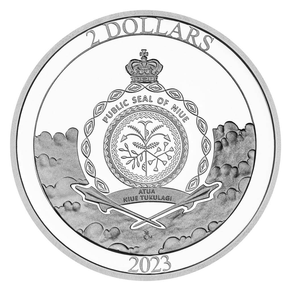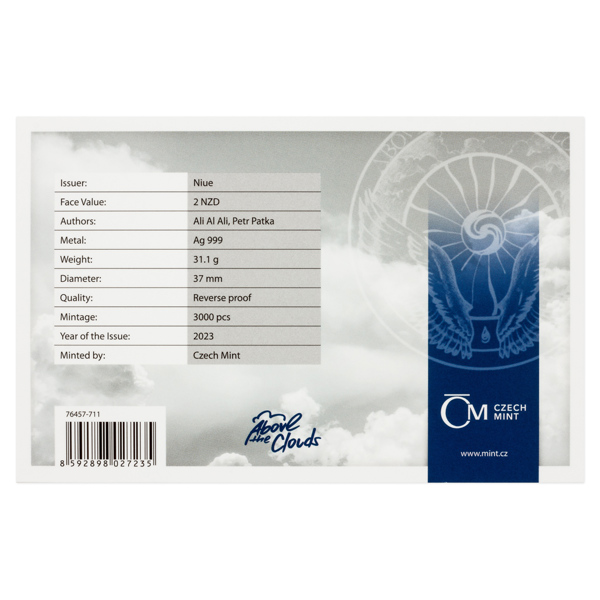 „Když v letectví vystoupáte nad mraky, znamená to, že jste překonali bezprostřední problémy a váš let bude hladší. Mince, která symbolizuje úsilí a úspěch, vystihuje právě tuto myšlenku – povznesení se nad obtíže a směřování k vyšším cílům. Slouží jako připomínka toho, že bez ohledu na turbulence, kterým čelíme – v letectví i v běžném životě –, je před námi vždy jasnější a klidnější cesta,“ říká emirátský výtvarník a pilot Ali Al Ali. Reverzní strana mince, kterou vytvořil ve spolupráci s jabloneckým medailérem Petrem Patkou, DiS., předkládá abstraktní koláž složenou z křídel, letecké turbíny a oblaků. Anglický opis na reverzu uvádí ABOVE THE CLOUDS (nad oblaky). Mraky najdete i na averzní straně. Protože mince České mincovny vycházejí v zahraniční licenci ostrova Niue, nesou na averzu ještě jeho státní znak, nominální hodnotu 1 DOLLAR (NZD) a rok emise 2023.