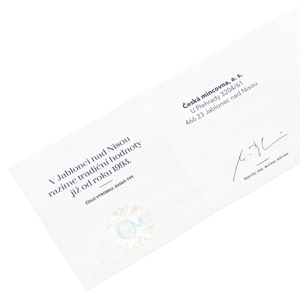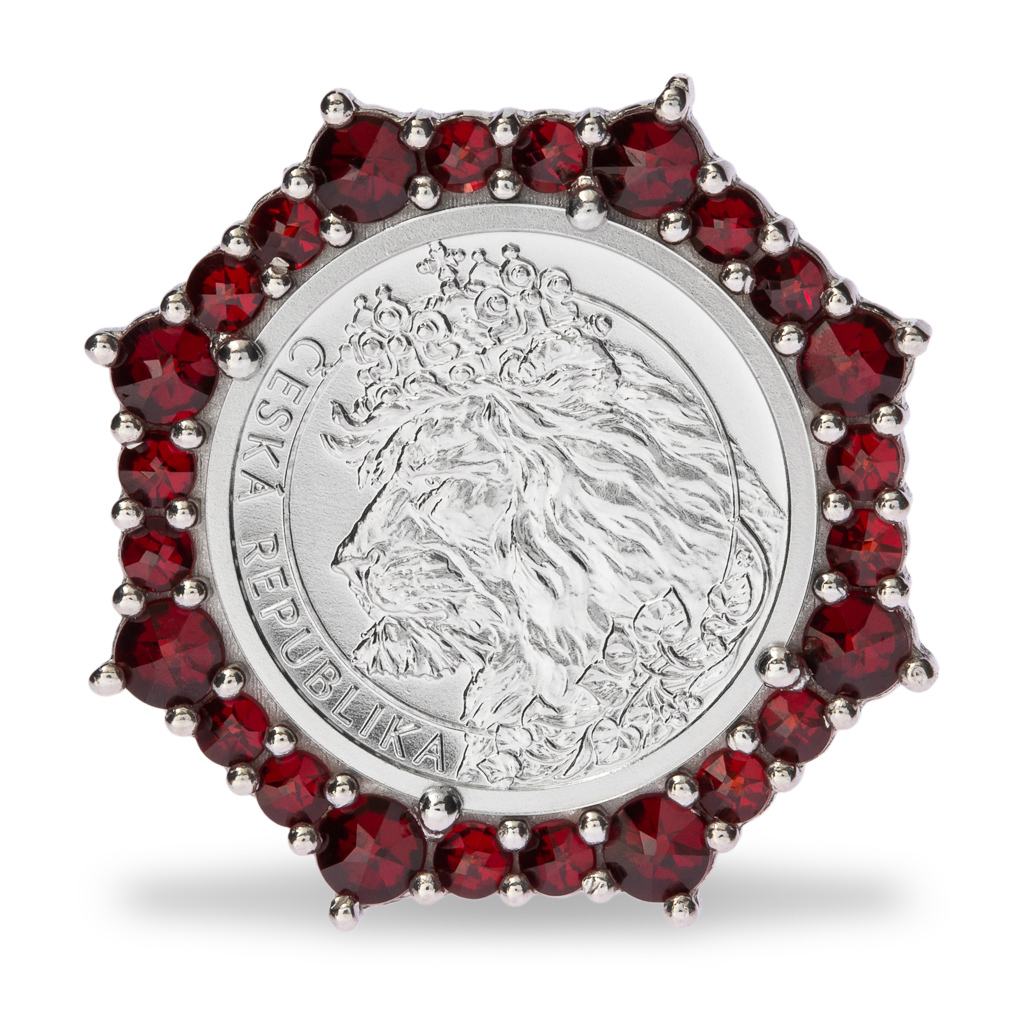 Stříbrný klenot, který je ústředním prvkem obou knoflíčků, předkládá vyobrazení tradiční heraldické šelmy – českého lva se Svatováclavskou korunou na hlavě. Autorem reliéfu, který znáte z investičních mincí Český lev, je medailér Asamat Baltaev, DiS. Stříbro je pokoveno rhodiem, které je hypoalergenní a zároveň zabraňuje černání šperku.