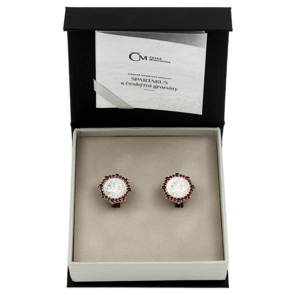 Rudé jako krev, plné tajemství, vášně a magických účinků – takové jsou české granáty, které mezi drahými kameny nemají sobě rovného. Vzácné drahokamy zdobí stříbrné manžetové knoflíčky „Spartakus“ s motivem českého lva, které vznikly ve spolupráci České mincovny a společnosti Granát Turnov.